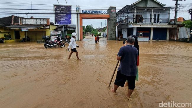 Banjir menggenangi sejumlah kawasan di Ponorogo. Banjir terjadi usai Bumi Reog diguyur hujan deras. Banjir juga disebabkan tanggul jebol.