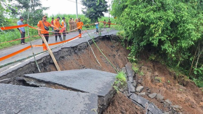 "Panjang jalan yang longsor mencapai 25 meter. Separuh yang hilang. Ruas ini merupakan akses utama dari Karangrejo ke Sendang maupun sebaliknya," kata Gilang, Senin (16/12/2024).