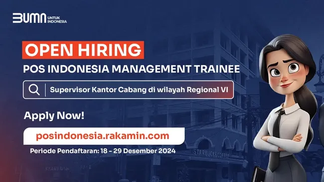 PT Pos Indonesia membuka lowongan Management Trainee untuk bulan Desember 2024. Pendaftaran lowongan kerja Pos Indonesia sudah dibuka hingga akhir bulan ini. Tertarik mendaftar? Yuk, simak informasi selengkapnya di sini.