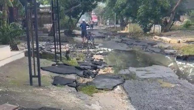 Seperti terlihat dalam video kiriman akun Instagram Andreli_48 yang diberi keterangan, "viral aspal umur sehari terkelupas diterjang banjir". Tampak dalam video itu aspal baru di jalan kabupaten berserakan hingga sejumlah warga berinisiatif mengangkat pecahan aspal agar tidak membahayakan.