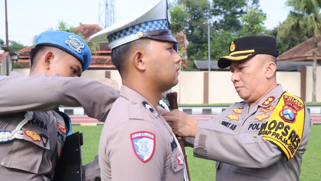 Polres Blitar menggelar apel gelar pasukan Operasi Lilin Semeru 2024. Ratusan personel disiapkan sebagai wujud sinergitas untuk mengamankan perayaan Natal dan Tahun Baru (Nataru).