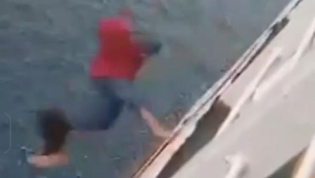 Tidak terdengar dalam video itu teriakan penumpang yang berupaya mencegah perempuan ini. Belum diketahui pasti bagaimana situasi ketika peristiwa itu terjadi hingga perempuan itu tercebur ke laut.