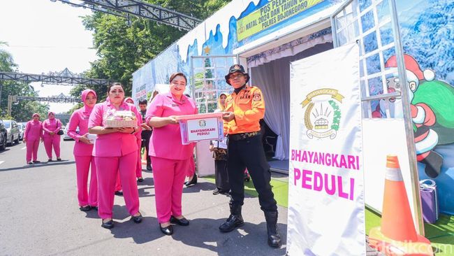 Dukungan para petugas oleh bhayangkari untuk tetap semangat dalam memberikan pelayanan terbaik kepada masyarakat yang merayakan Natal dan menyambut Tahun Baru, serta mereka yang melaksanakan liburan akhir tahun.
