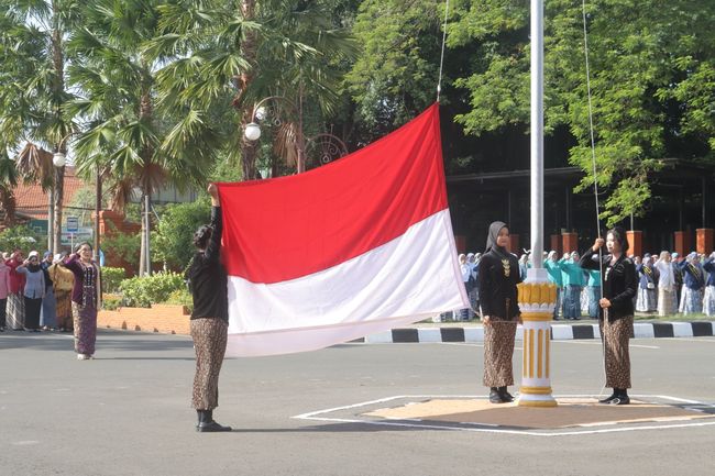 Ada yang unik dalam upacara peringatan Hari Ibu ke-96 dan Hari Bela Negara (HBN) ke-76 di Mojokerto. Sebab upacara ini dikomandani polwan berbusana kebaya.