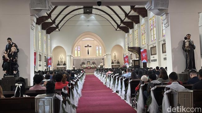 Pantauan detikJatim, Misa Natal kedua di gereja ini dimulai pukul 10.00 WIB. Ratusan jemaat tampak memenuhi gedung utama gereja hingga area luar atau halaman yang juga difungsikan. Pastor Kepala Paroki HKY Katedral Surabaya RD Cornelius Triwidya Tjahja Utama mengatakan momen Natal ini telah lama dinantikan umat.