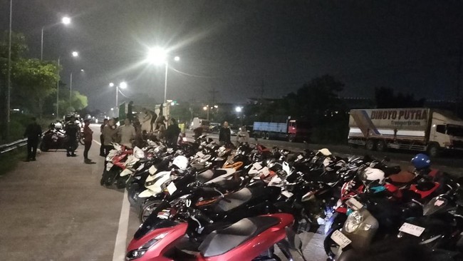Penggerebekan itu dilakukan Satlantas Polresta Sidoarjo saat patroli Blue Light pada Minggu (29/12) dini hari. Sebanyak 65 motor dan pengendaranya berhasil diamankan.