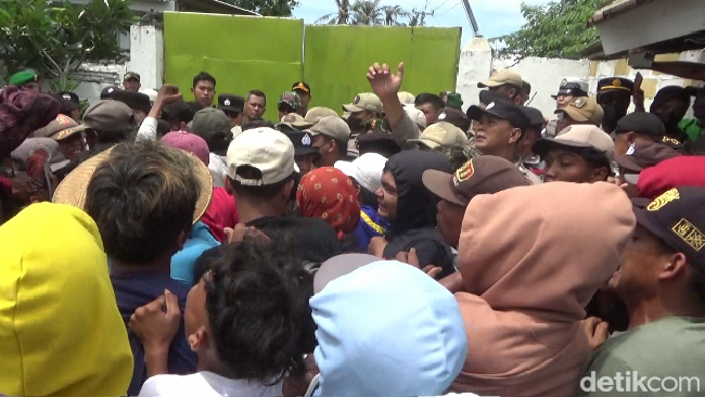 Ratusan warga Kecamatan Yosowilangun, Lumajang demo di tambak udang milik PT Bumi Subur. Demo sempat diwarnai saling dorong.