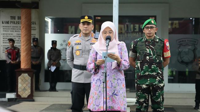 Bupati Banyuwangi Ipuk Fiestiandani memimpin Apel upacara kesiapan pengamanan malam tahun baru 2025 di Mapolresta Banyuwangi. Dia tekankan pentingnya tugas forkopimda memastikan keamanan selama malam tahun baru.