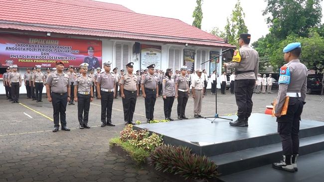 Polres Probolinggo Kota menggelar upacara laporan kenaikan pangkat anggota Polri dan PNS Polri periode 1 Januari 2025 bagi personel Polres dan Polsek Jajaran. Upacara bertempat di lapangan apel Mapolres Polres Probolinggo Kota.