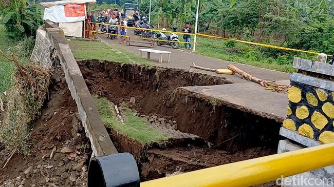 "Luapan air dari hulu Sungai Welang cukup besar hingga physcall 600. Beberapa kali menyebabkan banjir di wilayah sini. Ini ambrol karena tergerus air," kata Ary.