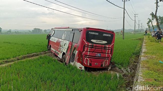 Sesampai di lokasi kejadian, bus tujuan Ponorogo-Jakarta itu hendak mendahului kendaraan besar. Namun, dari arah berlawanan datang pikap Supil. Karena jarak yang sudah dekat, tabrakan keras tak terhindarkan. Bus tersebut pun oleng ke kiri hingga masuk sawah milik Kedeni.