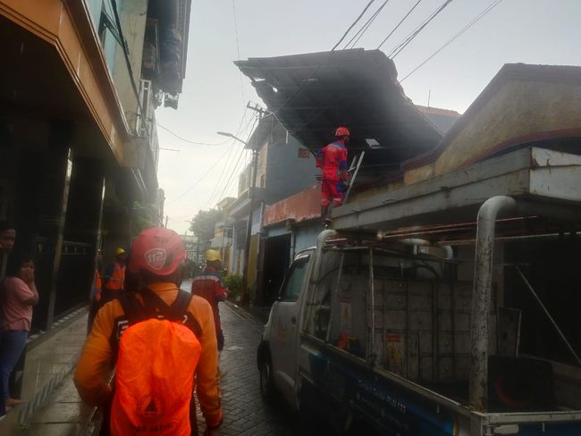 Beberapa kawasan di Surabaya utara dan barat dilanda angin puting beliung saat Surabaya dilanda hujan. Dampaknya atap rumah warga rusak.