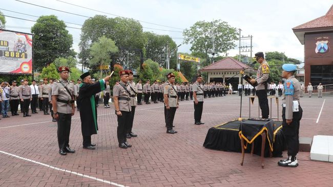 Upacara serah terima jabatan digelar di halaman Polres Trenggalek, dengan dipimpin langsung AKBP Indra Ranudikarta.