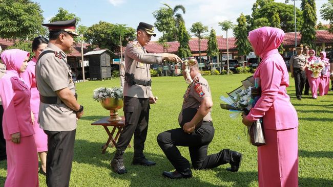 "Tradisi siraman air bunga dilaksanakan usai upacara sebagai simbol rasa syukur atas pencapaian tersebut (kenaikan pangkat)," kata Eko di lapangan Mapolres Jombang, Jalan KH Wahid Hasyim, Selasa (7/1/2025).
