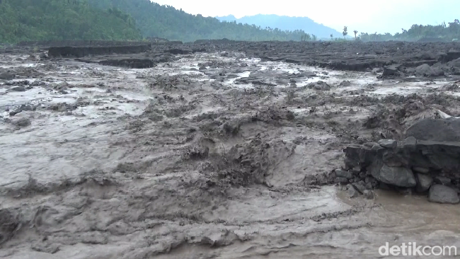 Banjir lahar Gunung Semeru kembali menerjang. Kali ini terjadi di aliran sungai Desa Jugosari, Kecamatan Candipuro, Lumajang.