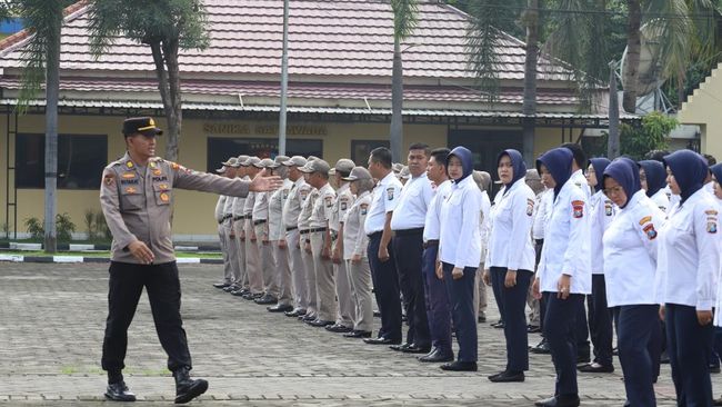 Sedikitnya, 50 aparatur sipil negara (ASN) dan pegawai harian lepas (PHL) Polres Mojokerto dilatih peraturan baris berbaris (PBB). Latihan ini untuk mengasah kedisiplinan dan kekompakan mereka.