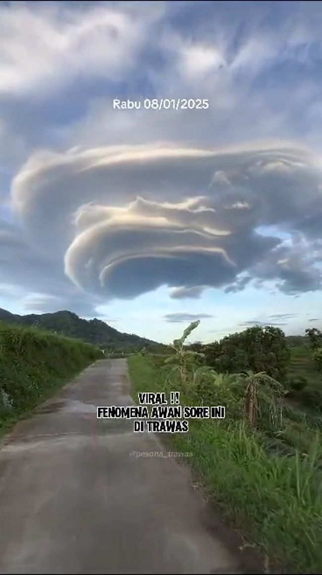 Fenomena 'awan UFO' menghiasi langit sore di Mojokerto viral di medsos. Fenomena tersebut adalah awan lentikularis yang membahaya bagi penerbangan.