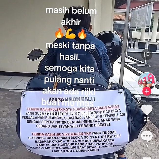 Demi membiayai pengobatan anaknya sejumlah barang miliknya seperti 3 unit motor habis dijual demi membiayai satu-satunya harapan pengobatan untuk anaknya, yakni kemoterapi.