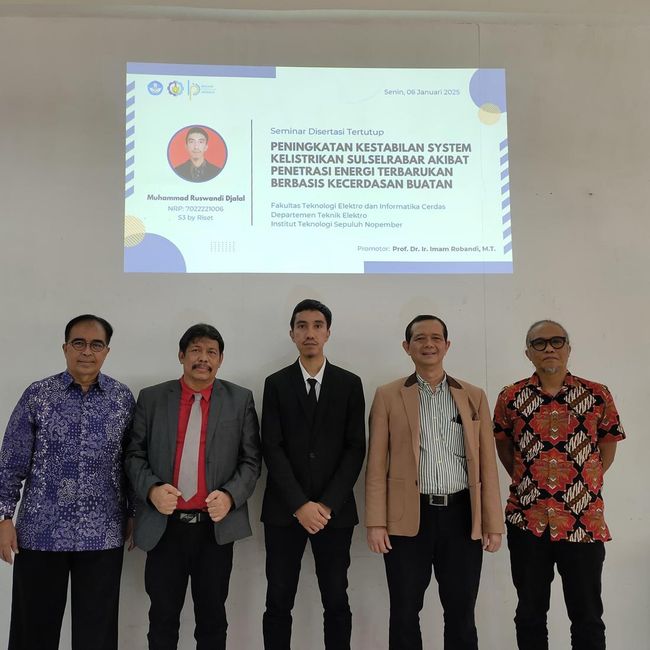 Institut Teknologi Sepuluh Nopember (ITS) kembali mencetak doktor berprestasi. Dia adalah Dr Muhammad Ruswandi Djalal SST MT yang merupakan doktor dari Departemen Teknik Elektro, Fakultas Teknik Elektro dan Informatika Cerdas (FTEIC) ITS.