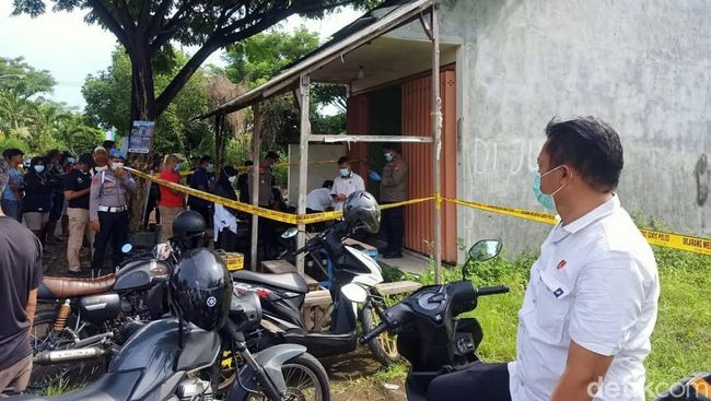 Warung berpintu warna oranye tempat ditemukannya mayat kini telah dipasangi garis polisi. Warga setempat masih tampak berkerumun di sekitar lokasi kejadian, penasaran dengan peristiwa yang menggegerkan tersebut.