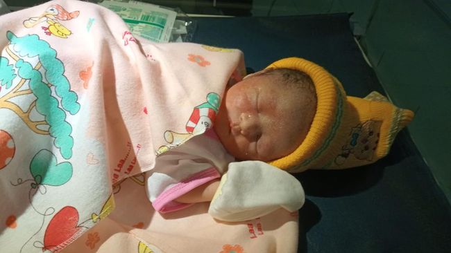 Saat ditemukan, bayi itu dibungkus kain jarik dan kantong plastik berwarna merah dengan ari-ari yang masih menempel.
