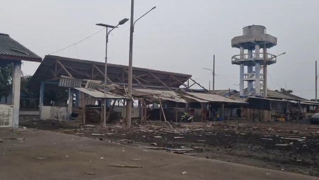 Puting beliung juga menyebabkan sebuah warung dan pos kamling yang berada di luar pelabuhan ambruk.