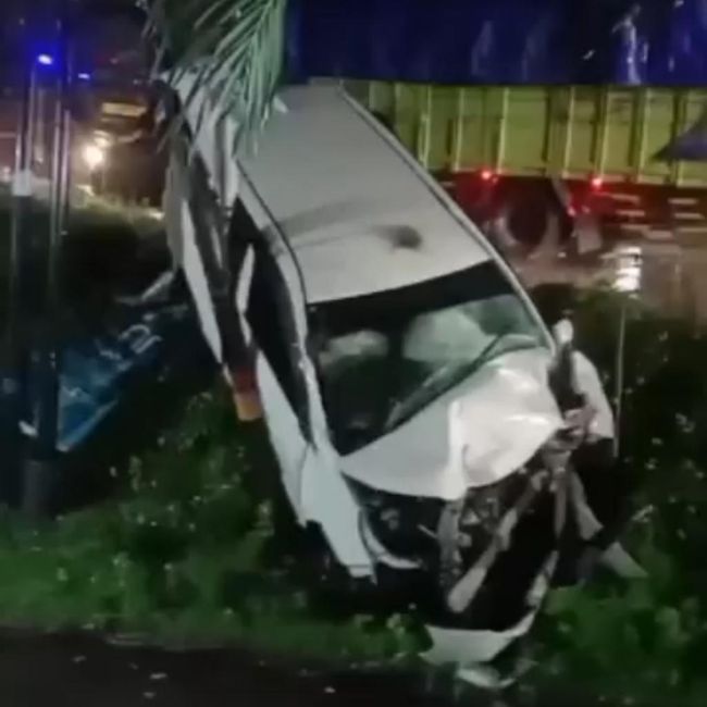 Mobil Daihatsu Sigra tertabrak Kereta Api (KA) Blambangan Ekspres di pelintasan palang pintu Kelurahan Latek, Kecamatan Bangil, Kabupaten Pasuruan. Mobil warna putih itu terlempar beberapa meter dan remuk di bagian depan.