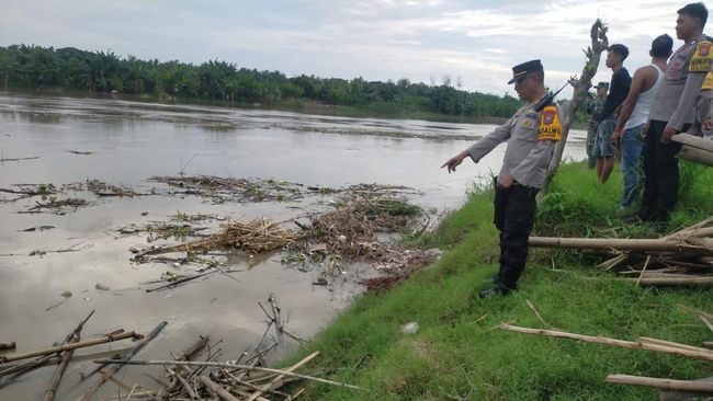 "Ada saksi yang melihat korban terbawa arus sungai dengan posisi tersangkut di tumpukan kayu, Beberapa warga yang saat itu melihat berusaha melemparkan jangkar tali ke arah korban, namun tidak kena," jelas Slamet.