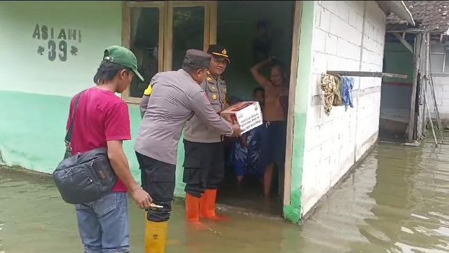"Kami terus patroli sambil memberikan bantuan mi instan dan sembako di beberapa rumah warga yang kebanjiran,' tutur Kapolsek Kalitidu AKP Saefudinuri.
