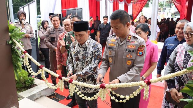 Kapolres Mojokerto Kota AKBP Daniel S Marunduri meresmikan kantor Polsek Gedeg. Pembangunan kantor polisi baru yang dimulai Juni 2024 ini menghabiskan anggaran Rp 1,762 miliar.