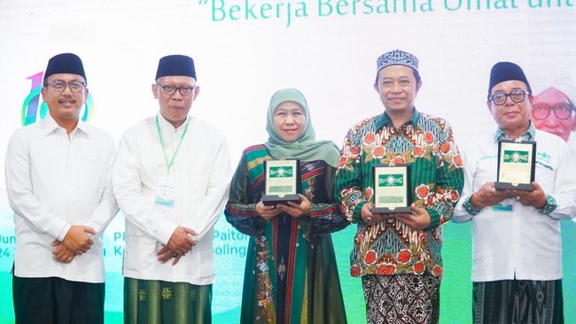 Khofifah Indar Parawansa menghadiri Peringatan Hari Lahir Ke-102 Nahdlatul Ulama sekaligus Rakerwil PWNU Jatim di Pondok Pesantren Nurul Jadid Probolinggo. Dia ajak seluruh elemen keluarga besar NU menyatukan semangat bersama-sama mewujudkan Indonesia Emas 2045.