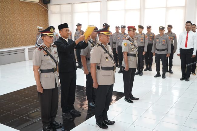 Kapolres Probolinggo Kota AKBP Oki Ahadian Purwono memimpin upacara sertijab dua pejabat utama di di Rupatama Mapolres. Upacara sertijab dihadiri Wakapolres, PJU, Kapolsek Jajaran serta anggota dan Bhayangkari.