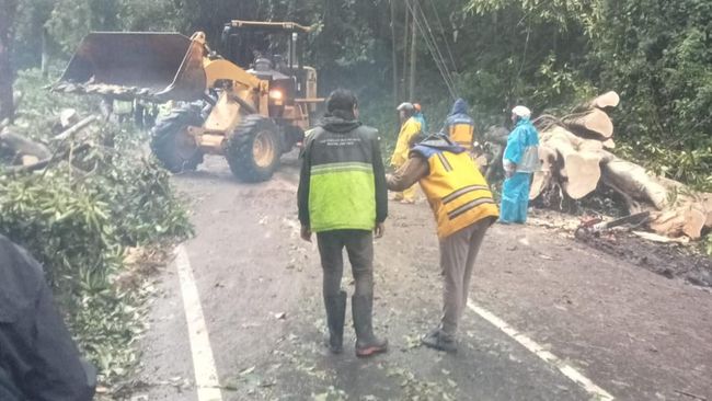 Upaya penanganan cepat sudah dilakukan oleh petugas gabungan untuk membersihkan batang pohon yang menutup total akses jalan.