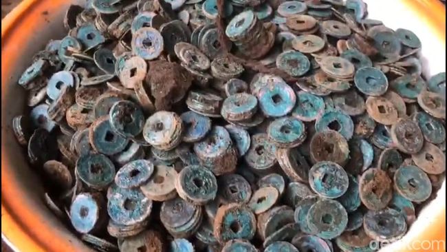 Pada koin-koin tersebut Kariyo melihat ada beberapa huruf China dengan lubang segi empat di tengahnya. Koin yang terbuat dari tembaga itu dia perkirakan berbobot 1 kuintal.