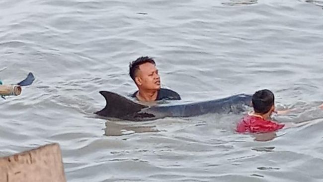 "Kalau lumba-lumba hidup baru pertama. Kalau lumba-lumba atau paus mati sudah pernah. Otomatis perilakunya agak berbeda, akhirnya tadi koordinasi dengan tim di lapangan, langsung membantu di lokasi menggiring lumba-lumba ke laut," jelasnya.