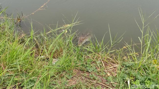 Saat detikJatim mendatangi tambak milik Agus, buaya itu memang muncul. Saat didekati di tepian tambak dengan jarak sekitar 5 meter, binatang itu menampakkan kepalanya di balik air tambak yang cukup keruh. Cukup menyeramkan.