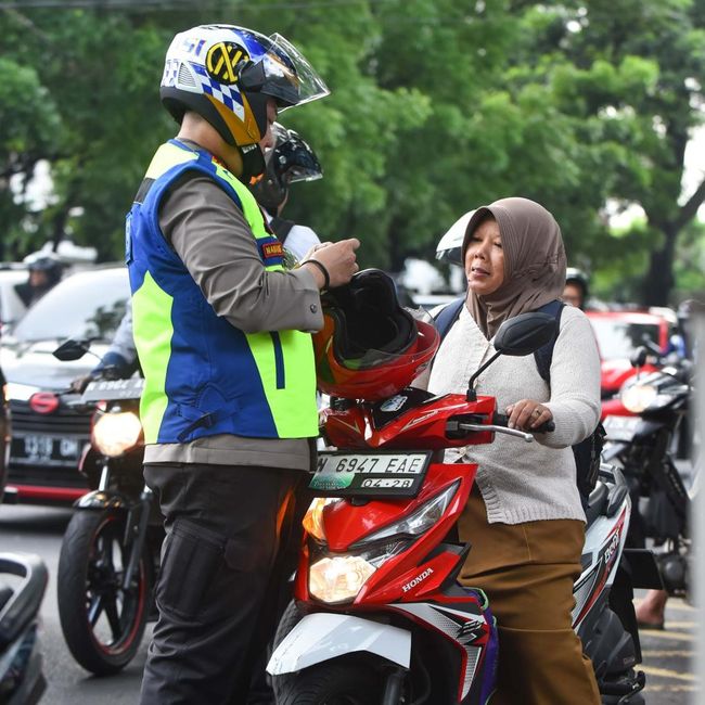 Tak hanya itu, petugas juga memberikan edukasi tentang keselamatan berkendara, termasuk cara penggunaan helm yang benar kepada para pengantar pelajar ke sekolah. Agar memastikan tali helm berbunyi 'klik' sebagai tanda telah terpasang dengan aman.