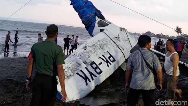 Yudi, salah satu warga setempat yang turut menyaksikan jatuhnya pesawat menyampaikan kedua awak pesawat itu sempat terjebak dalam pesawat di tengah laut. Setidaknya ada 10 nelayan yang berupaya memecahkan kaca samping pesawat agar keduanya bisa keluar.