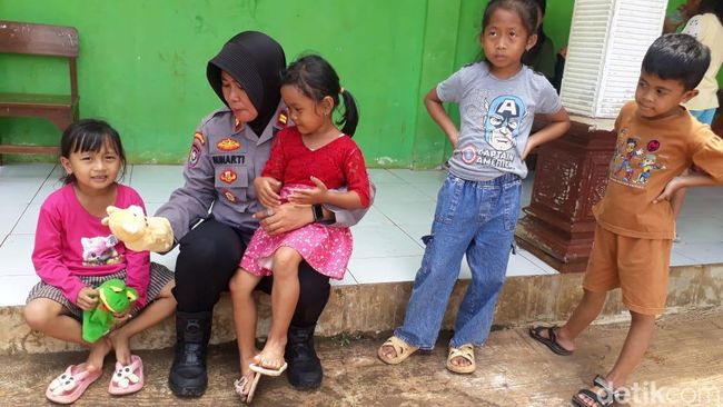 Sebagai wujud kepeduliannya, Polres Pasuruan melakukan pendampingan untuk pengungsi. Petugas memberikan trauma healing bagi pengungsi, khususnya anak-anak, Rabu (5/2/2025).