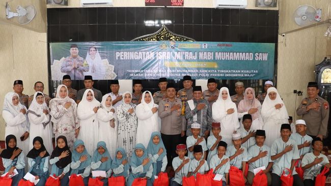 Polres Pelabuhan Tanjung Perak Surabaya menggelar peringatan Isra Mi'raj. Acara berlangsung khidmat di Masjid Al Hidayah.