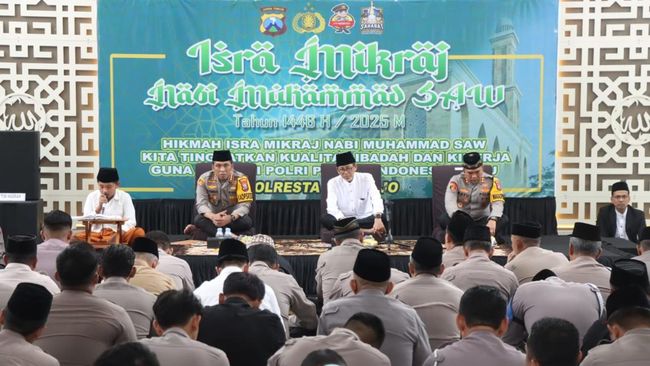 Sebagai upaya untuk meneladani kepribadian, perjuangan dan kepemimpinan Nabi Muhammad SAW. Polresta Sidoarjo peringati Isra Mi'raj dengan menggelar pembacaan Shalawat Nabi, pembacaan kitab suci Alquran serta pengajian agama.