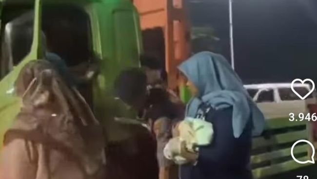 Petugas yang mendekati kabin truk mendapati bahwa istri sang sopir tengah menjalani persalinan mandiri. Menyadari kondisi tersebut, petugas segera menghubungi tenaga medis untuk bantuan.