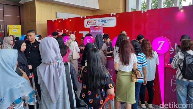 Terbukti, langsung diserbu para pencinta make-up dan skincare. Sejak pukul 09.30 WIB, lokasi Surabaya X Beauty sudah ramai. Bahkan saking antusiasnya, pengunjung mengular hingga di luar lokasi.