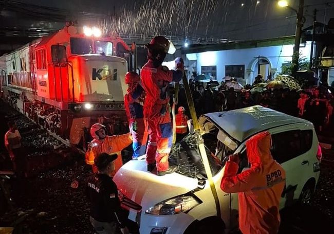"Saat ini petugas dari KAI Daop 8 Surabaya berupaya mengevakuasi kendaraan mobil agar jalur KA dapat dilalui kembali," imbuhnya.