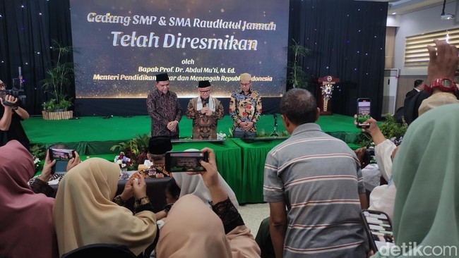 Hal itu disampaikan oleh Mendikdasmen Abdul Mu'ti usai meresmikan gedung sekolah SMP dan SMA Raudzatul Jannah di Desa Pepelegi Kecamatan Waru Sidoarjo, Sabtu (8/2/2025).