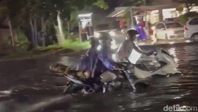 "Saya sempat bingung karena malam hari seperti ini tidak ada bengkel sepeda motor yang buka. Saya kira genangan air tidak tinggi, ternyata sepeda motor mogok," imbuh Susanto.