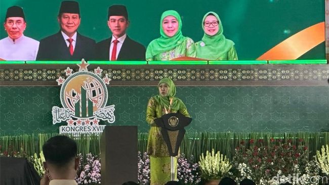 "Insya Allah kami di Muslimat NU tegak lurus mengawal bapak (Prabowo)," kata Khofifah dalam sambutannya di acara Kongres ke-XVIII Muslimat NU yang digelar di Jatim Expo Surabaya, Senin (10/2/2025).