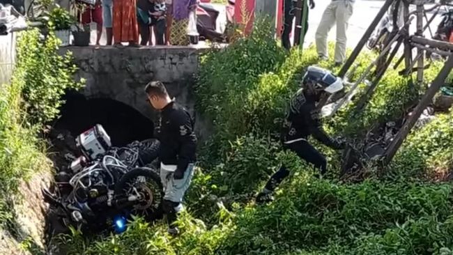 "Mengerem mendadak karena menghindari pemotor. Lalu masuk parit," kata Deni, salah satu warga.