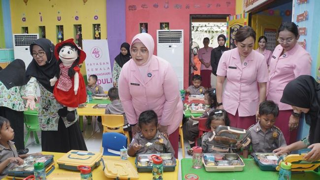 Kepedulian terhadap anak-anak dilakukan Ketua Pengurus Yayasan Kemala Bhayangkari (PYKB) Daerah Jawa Timur Ny. Ade Imam Sugianto. Salah satuhnya dengan membagikan makanan bergizi di TK Kemala Bhayangkari 83, Sidoarjo, Kamis (13/2/2025).