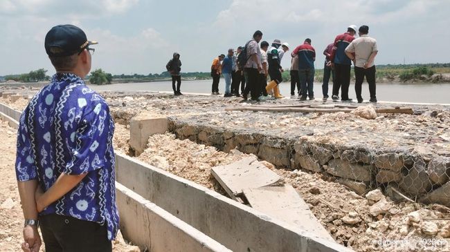 Pantauan detikJatim di lokasi, Kamis (13/2/2025), sejumlah personel korps cokelat yang meninjau lokasi didampingi Kepala Dinas Pekerjaan Umum Sumber Daya Air (PU SDA) Heri Widodo, Kabid SDA Iwan Kristian, serta Direktur PT Indopenta Bumi Permai (IBP) Ardi bersama beberapa karyawannya.